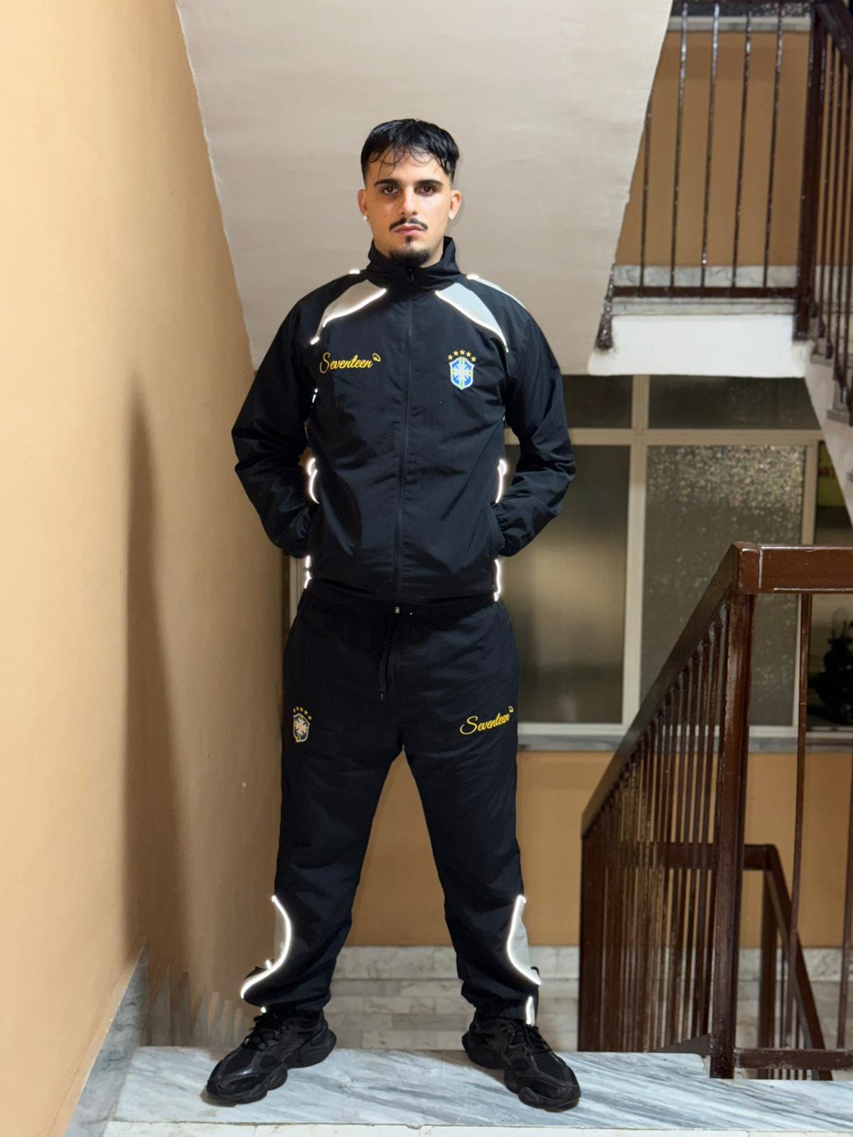 LA SEVENTEEN SET BRASIL NASCE DA UN PROGETTO INNOVATIVO, LA SUA VERSATILITA' E' CIO CHE LA RENDE UN PEZZO UNICO IN TUTTO E PER TUTTO. LA SUA VESTIBILITA' GARANTISCE UN COMFORT PER TUTTE LE OCCASIONI, IDEALE PER COMBATTERE IL VENTO GRAZIE ALLA SUA STRUTTURA IN NYLON ESTERNA CON RETE INTERNA PER ISOLARE L'UMIDITA. RESISTENTE A L'ACQUA GRAZIE ALLA FANTASTICA QUALITA' DEL TESSUTO ESSA GLI SCIVOLA ADDOSSO SENZA NEMMENO TOCCARLA, INOLTRE IL TESSUTO USATO E' STATO CREATO ANCHE PER UN' ASCIUGATURA SUPER RAPIDA PER GARANTIRE SEMPRE LA DISPONIBILITA' DEL PRODOTTO IN CASI ESTREMI. INOLTRE PER COMPLETARE IL TUTTO E' COMPOSTA DA DUE TASCHE SULLA FELPA E DUE SUL PANTALONE PER ACCOGLIERE TUTTI I VOSTRI OGGETTI. PRESENTA ANCHE DELLE CERNIERE NASCOSTE SUL FONDO DEL PANTALONE PER REGOLARE IL FIT A VOSTRO PIACERE AVENDO SEMPRE IL FIT GIUSTO. PER CONCLUDERE ABBIAMO AGGIUNTO DEI DETTAGLI CATARIFRANGENTI PER NON RESTARE INNORSERVATI NEMMENO AL BUIO.